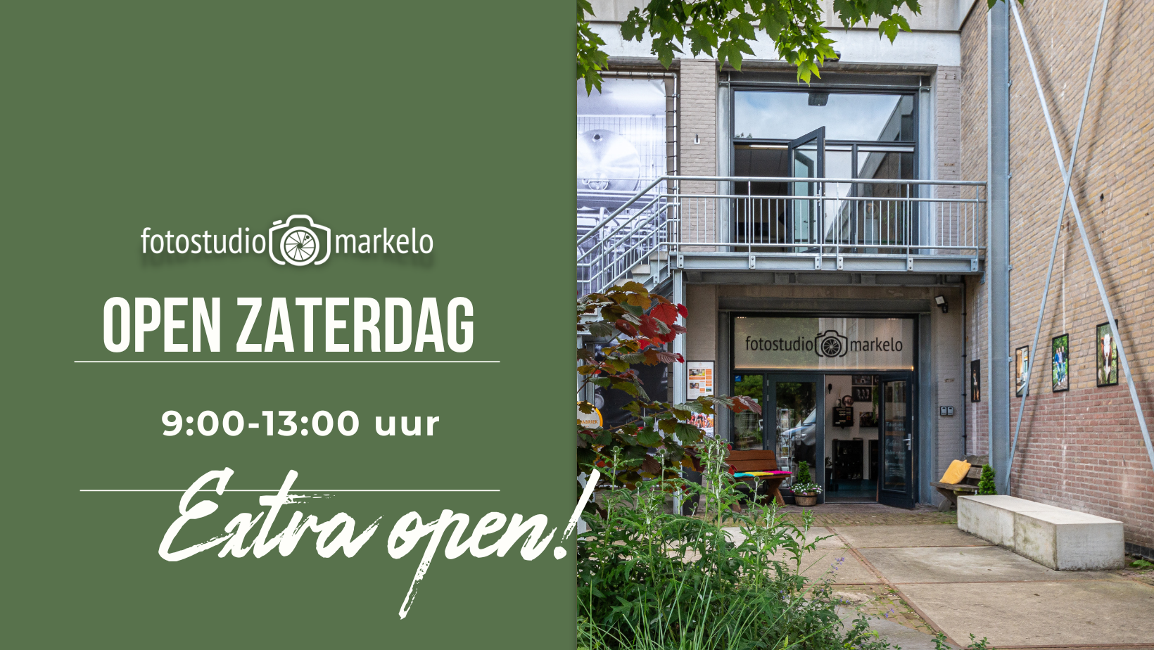 Op de eerste zaterdag van de maand is het open zaterdag. Wij open onze deuren van Fotostudio Markelo van 9:00 tot 13:00. Kom gezellig een kijkje nemen in onze studio of kom vrijblijvend informeren naar de mogelijkheden voor een fotoshoot. Tevens is er de mogelijkheid om pasfoto’s te laten maken of neem een kijkje in ons brede assortiment wenskaarten en fotolijsten.